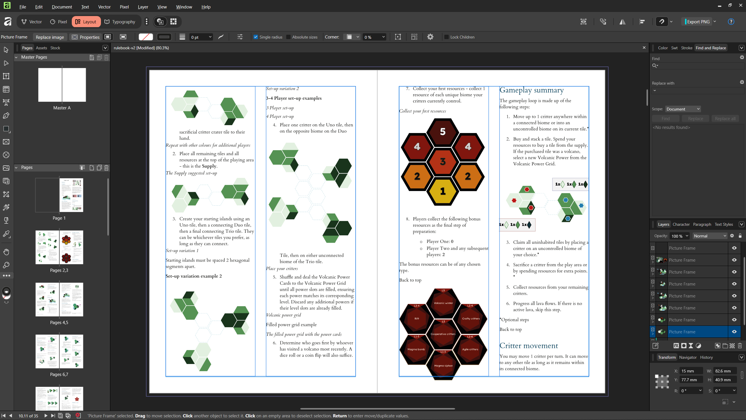 I’ve always like the software, but whilst having access to Adobe through work, I’d been happily chipping away in there. The announcement making it FREE was an offer too good to pass up. I redownloaded and thought I would get right into it with a task I’d been putting off - properly designing the rulebook for print.