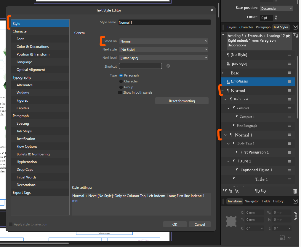 Print - Affinity's Text Styles Panel